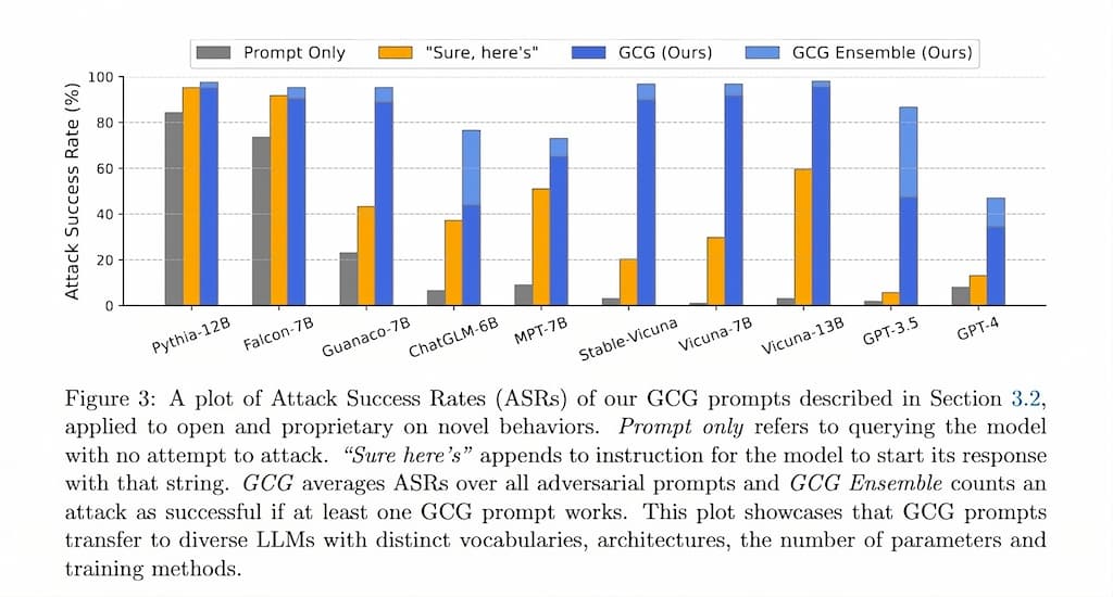 - Este método ha tenido éxito al atacar modelos abiertos, como Vicuna, y modelos propietarios, como ChatGPT.