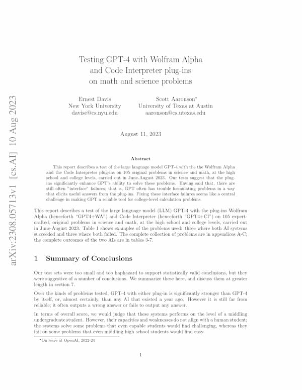 La última incorporación a la familia de modelos de lenguaje de OpenAI, GPT-4, ha sido objeto de un estudio fascinante. En una interesante intersección de matemáticas, ciencia y tecnología, este estudio ↗ profundiza en el rendimiento de GPT-4 en problemas de matemáticas y ciencia, poniendo a prueba su habilidad con la ayuda de los plugins de Wolfram Alpha y Code Interpreter.