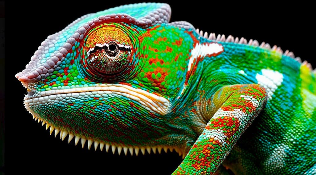 Fíjate en el camaleón sobre fondo negro: ¡los detalles son tan realistas que parecen una fotografía profesional! Y esto no es solo un caso aislado, todos los ejemplos que hemos visto son impresionantes.