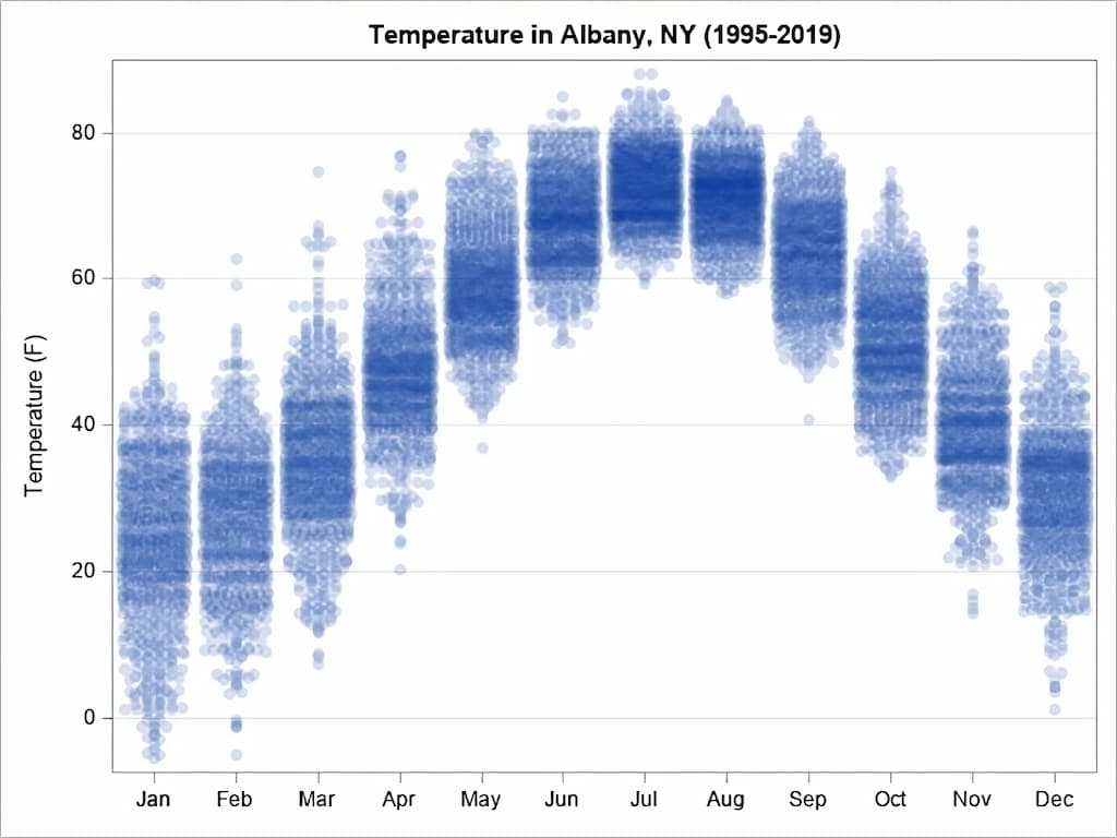 Si estás trabajando con un conjunto de datos más pequeño, el Strip plot puede ser una opción efectiva. Este gráfico muestra los puntos de datos individuales, proporcionando una visión más clara de la densidad de los datos.