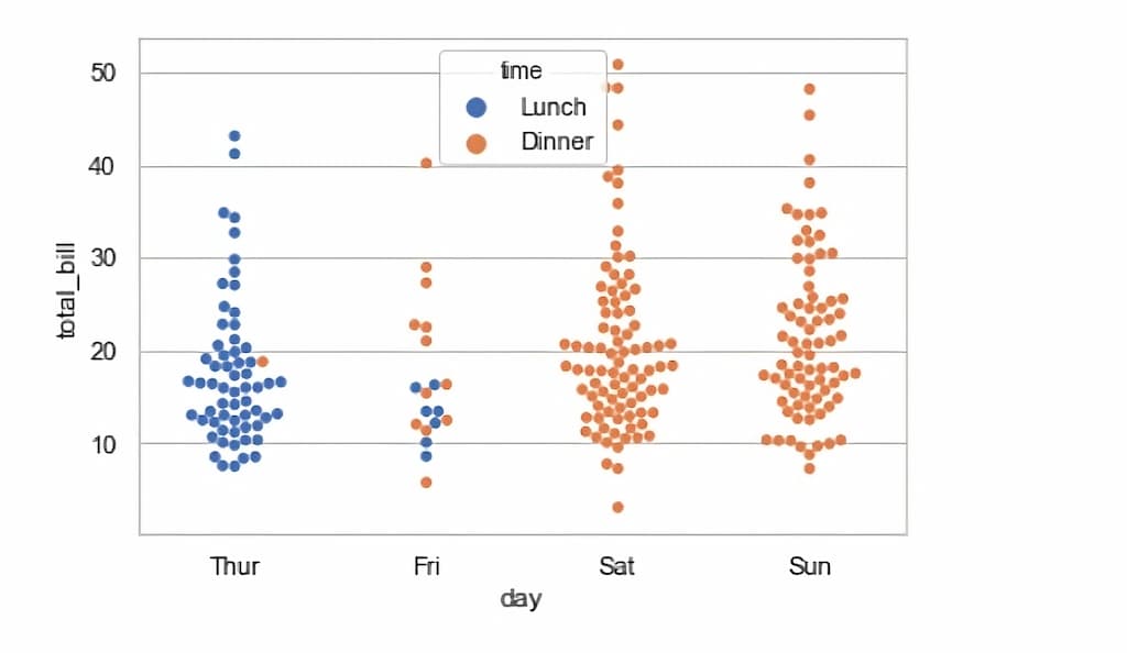 Similar al Strip plot, pero con un toque adicional. El Swarm plot utiliza un algoritmo para ajustar la posición de los puntos, evitando la superposición y proporcionando una vista aún más clara de los datos.